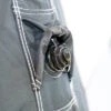 verstaut unter dem Vordach des Vorzeltes ist das Sonnendach vor Wind und Regen geschützt.